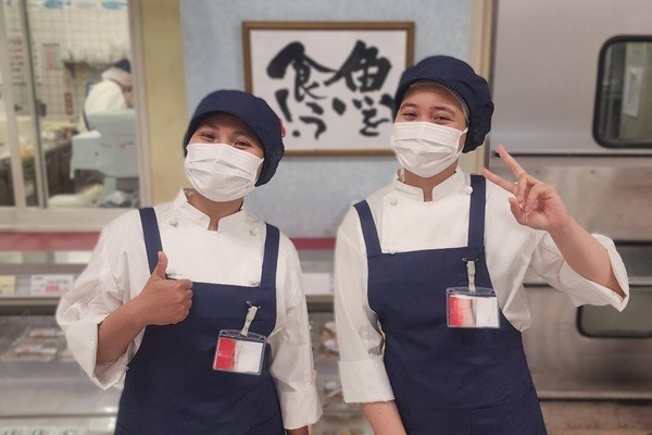 水産加工工場で実習生として培ってきた技術を発揮!魚をさばくのは得意!インドネシア国籍の2人は特定技能としてスーパーマーケット水産部門で戦力となっています。明るく元気な姿に他の従業員も自然と笑顔に。スーパーマーケットの人材不足が深刻化している中、厨房での作業が認められた特定技能が注目されています。自分たちが加工した食材でお客様も笑顔にしたい想いを込め、日々努力しています!